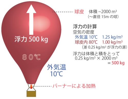 エジプトでの熱気球の炎上墜落事故がありました。 熱気球はどの程度高い温度で使われているのか気になりましたので、熱気球の浮力と耐熱温度について調べてみました。 熱気球の浮力の計算 熱気球は空気を貯める「球皮」があり、そこに人が載る「バスケット(…